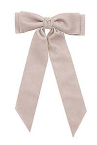Madeline Velvet Long Tail Bow-Taupe