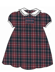 RN Finley Royal Blue w/ Red Smocked Dress
